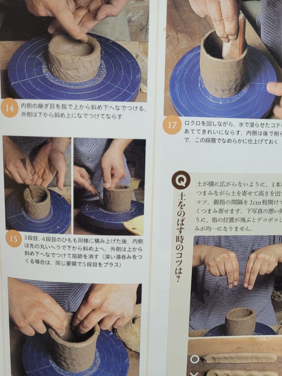 Foi logo depois de ver esse livro que aprendi, ali mesmo no ateliê, a técnica do acordelado, aquele método de construir formas com rolinhos, como se fosse um macarrão de barro, enrolando e subindo camada por camada. É um processo simples à primeira vista, mas cheio de possibilidades.